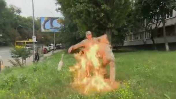 Бойца пытались остановить присутствующие, однако он успел облить себя зажигательной смесью и поджег себя. Ему на помощь сразу подбежали пожарные, которые присутствовали там, и с помощью огнетушителей огонь удалось сразу же потушить.
