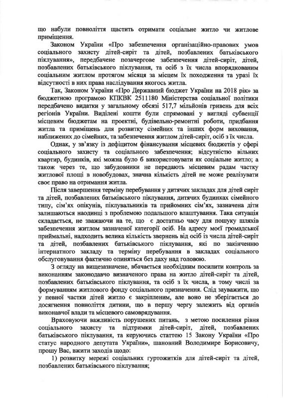 Большая часть денег на строительство или покупку социального жилья для выпускников интернатов поступает из государственной казны. Подключаются к финансированию и местные бюджеты. Но даже в этом случае очередь не удается ликвидировать уже многие годы. Портит картину и другая проблема. Часто жилье за сиротами закрепляют еще на этапе получения такого статуса. Но, как правило, оно не сохраняется до достижения совершеннолетия ребенка, - и в первую очередь это вина органов исполнительной власти и местного самоуправления – констатирует Сергей Кивалов. Он убежден: необходимо усилить контроль за выполнением законодательно установленного права на жилье детей-сирот и детей, лишенных родительской опеки, в том числе за формированием жилищного фонда социального назначения.