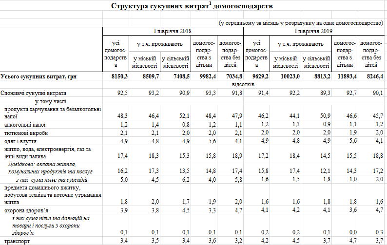 Расходы украинцев в первом полугодии 2019 года на продукты питания и безалкогольные напитки составляли 46,2% общих расходов. Об этом свидетельствуют данные выборочного обследования условий жизни домохозяйств Государственной службы статистики.