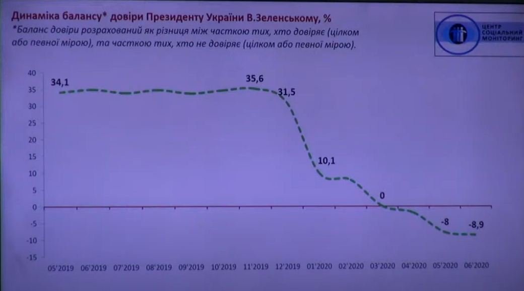 Рейтинг президента Владимира Зеленского продолжает снижаться. Главе государства сегодня доверяет 41% украинский, а 50% - не доверяет. Это показали результаты соцопроса, в первой половине июня провели специалисты Украинского института социальных исследований (УИСИ) им. А. Яременко.