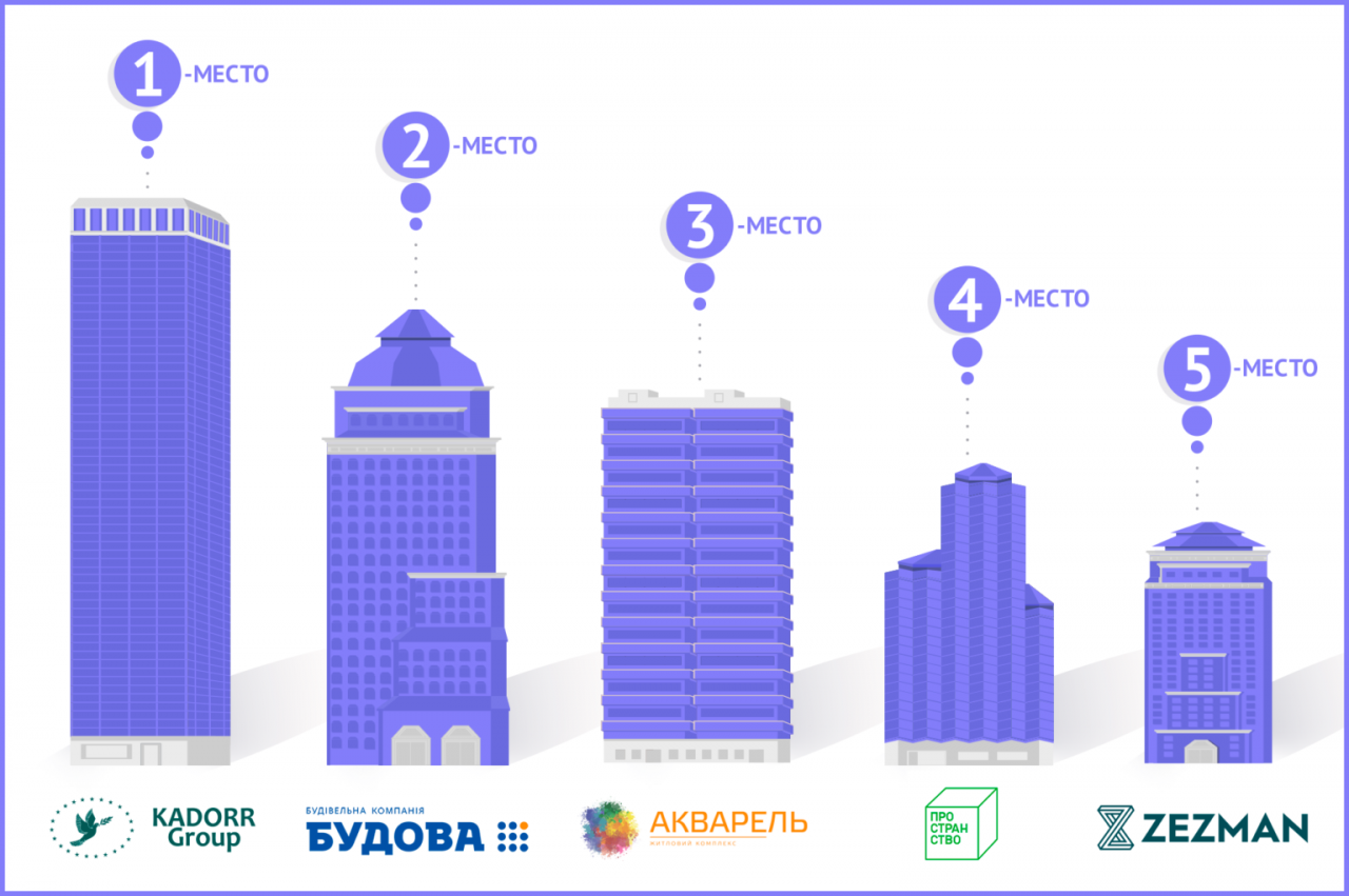 2 место – «Будова». Компания основана в 1990 году, и за это время застройщик стал одним из самых крупных на юге Украины. С 2010 года компания сдала 31 дом, при этом 32 дома находятся в процессе строительства. В активе компании более 1 млн кв. м сданного жилья.