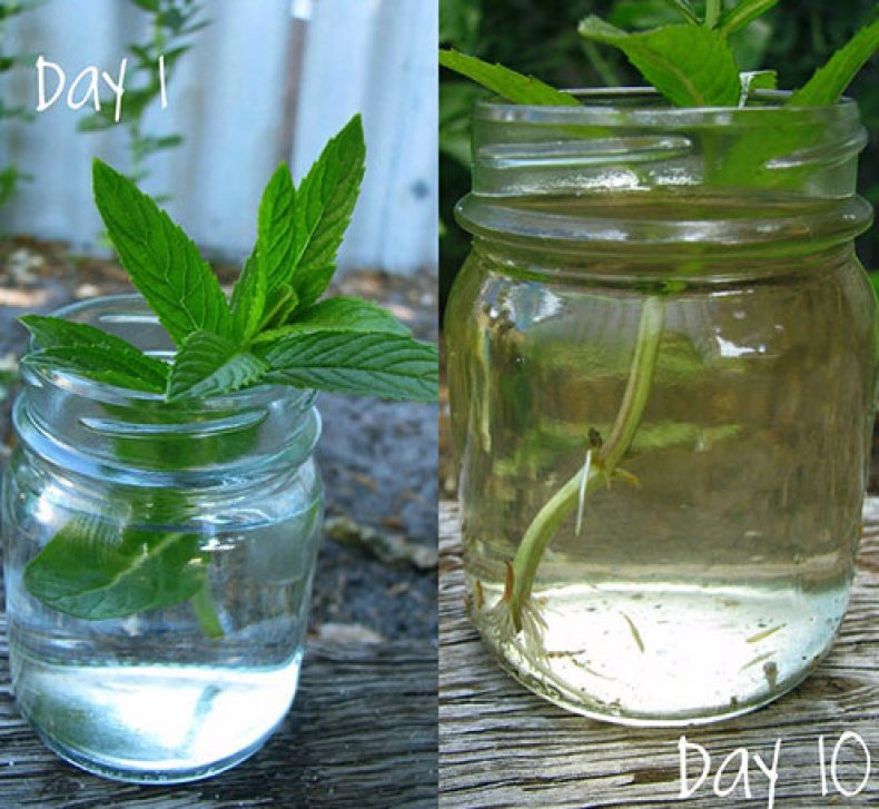 Этот метод считается более легким. Чтобы вырастить растение с помощью черенкования, следует отрезать небольшую ветку, на которой растет узелок с листвой. Данную часть мяты необходимо переместить в емкость с водой. На протяжении недели на веточке будут появляться небольшие корни, которые нужно держать под водой.