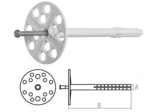 Это один из самых распространённых типов дюбелей. Он состоит из пластикового корпуса и металлического гвоздя. Такой дюбель подходит для крепления утеплителей на поверхности из бетона, кирпича или камня. Металлический гвоздь обеспечивает высокую прочность и устойчивость к нагрузкам.