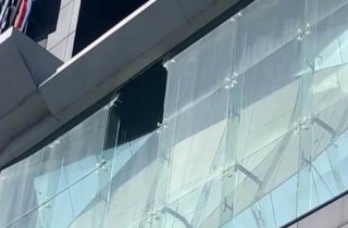 В одесском ТРЦ Gagarinn Plaza огромное стекло упало с фасада на припаркованные авто