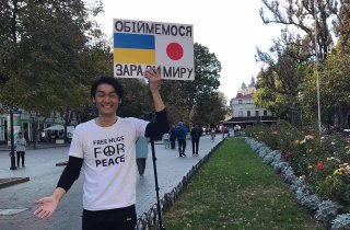 Японский блоггер на Дерибасовской предлагает одесситам объятия ради мира