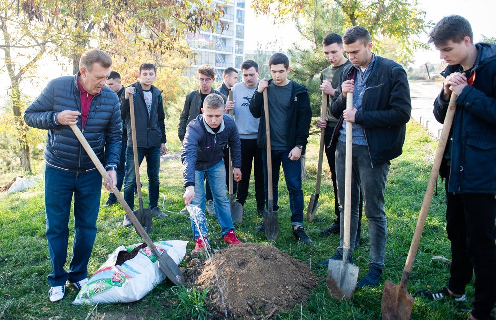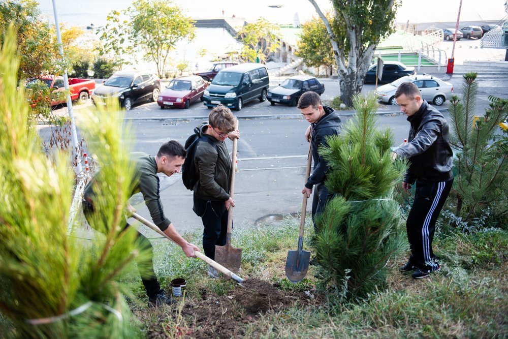 «Субботники» вовсе не обязательно проводить только по субботам – для добрых дел хорош любой день. Вот снова в один из последних погожих октябрьских деньков студенты Одесской Юракадемии вышли на прибрежные склоны в районе 8-й станции Большого Фонтана, чтобы потрудиться на ниве благоустройства нашего общего города - высадить новую партию молодых сосени очистить набережную.
