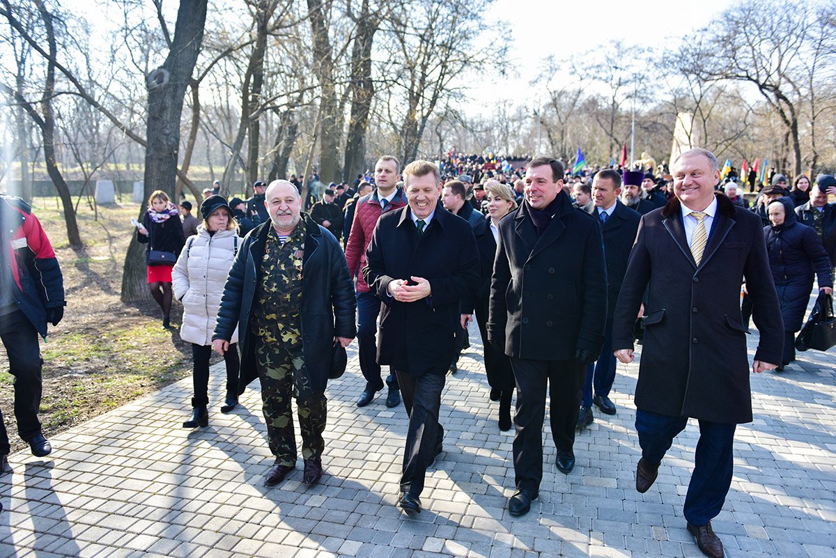 Затем состоялось торжественное шествие в честь воинов-интернационалистов. Колонна двинулась по Пушкинской и через некоторое время достигла парка им. Шевченко.