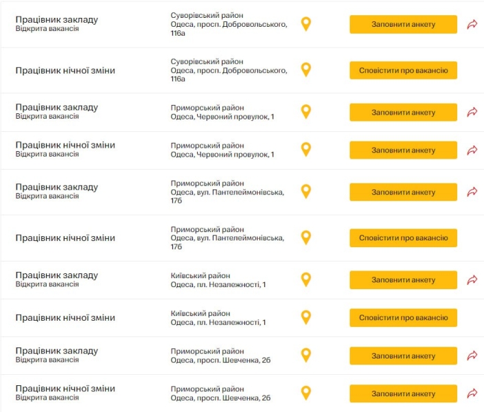 Однако на официальном сайте сети появились вакансии для нескольких ресторанов в Одессе, таких как на: