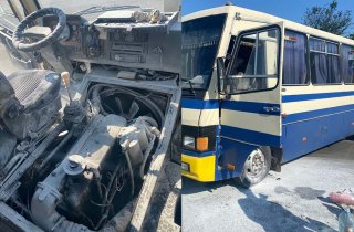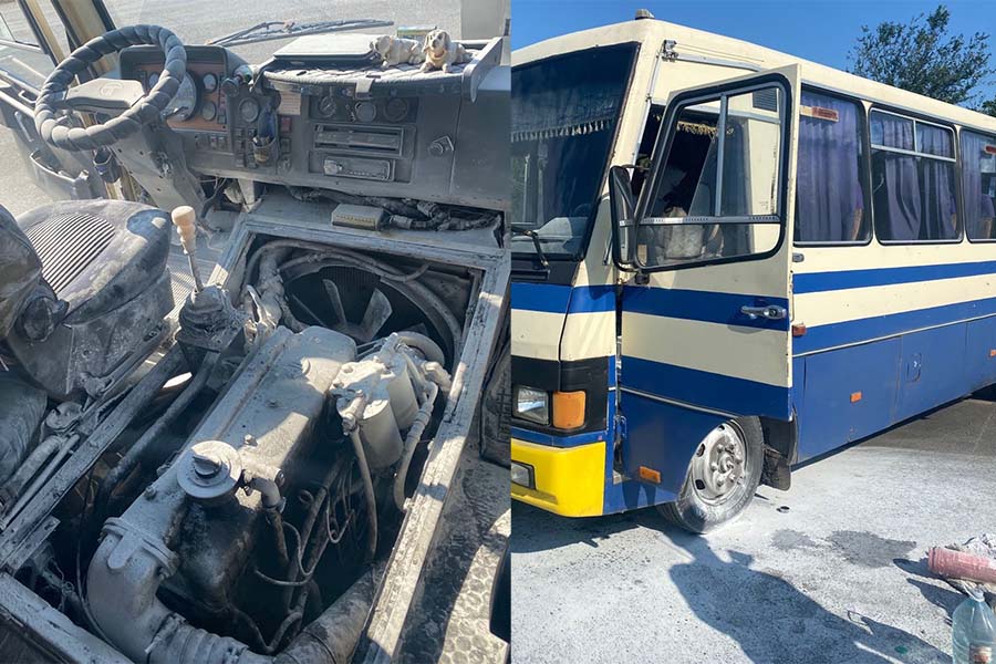 В пассажирском автобусе во время движения загорелся двигатель. Дежурившие на блокпосте бойцы НГУ помогли погасить пламя.