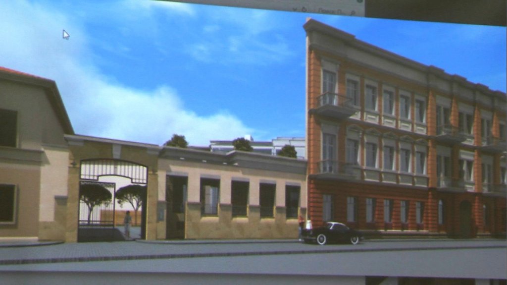 “Мы отказалась от одного этажа и у нас по сути одноэтажное, ну всмысле одноэтажное здание со вторам уровнем утопленным в глубь пространства, т.е. по сути, мы так рас читали видовые точки, что вот этот вот второй урівень мы его практически не видим.”– сообщил архитектор проекта Артур Свейда.