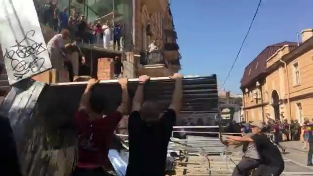 Следует отметить, что «разрушительный визит» активистов не помешал застройщику выполнить взятое еще в 2011 году обязательство – отремонтировать главный и боковой фасад одесской достопримечательности - Дома-стены.