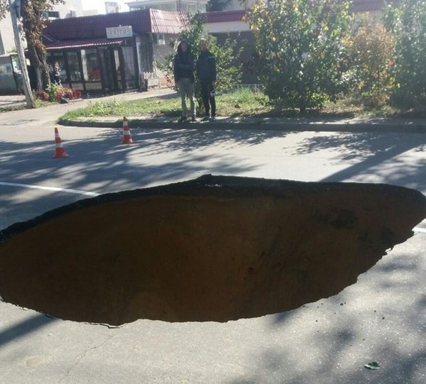 «Прибывшая на место ЧП аварийная служба определила, что это, к сожалению, провал на канализационном коллекторе диаметром 1200 мм. Оградили, будут проводить раскопки, чтобы выяснить причину. Спецтехника — в пути», — сообщили в пресс-службе предприятия «Инфоксводоканал» (его хозяин — экс-министр экологии Николай Злочевский).