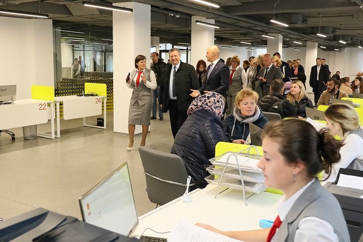 Новый Центр работает по принципу "открытый офис" и включает в себя работу трех фронт-офисов - Центр предоставления интегрированных социальных услуг, Центр предоставления административных услуг и Центр запросов и обращений граждан.