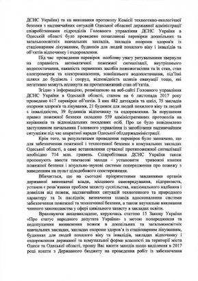 Также сильный пожар вспыхнул в Одессе в ночь на 2 ноября. Тогда горели два корпуса санатория «Красные зори». О счастливой случайности, на этот раз обошлось без человеческих жертв. Всего же на пожарах- только в этом году погиб ли более тысячи наших сограждан и еще свыше тысячи человек получили ожоги и ранения. Учитывая страшную статистику смертности на пожарах, были проверены все учебные, дошкольные оздоровительные, курортные и коммунальные учреждения Одесской области.