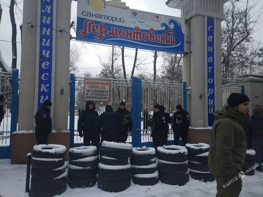 Правоохранители задержали троих человек, выведенных с территории санатория. На месте присутствует заместитель мэра Одессы Андрей Котляр и депутат горсовета Денис Григорьев.