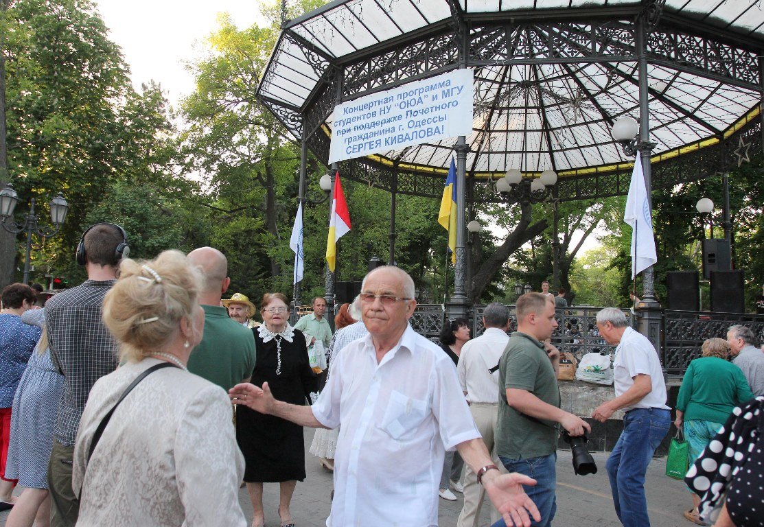 Звучащие у Ротонды Горсада песни создают особую ауру для того чтобы горожане отдыхали здесь, танцевали, веселились, а те, кто приехал в Одессу, понимали, что Одесса рада их видеть.