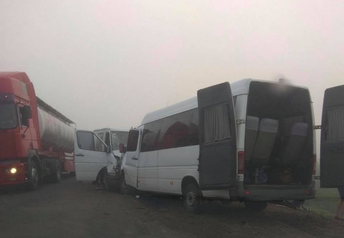 В 7:40 в полицию поступило сообщение о столкновении двух автомобилей на автодороге Одесса-Спасское в районе с. Дмитровка Килийского район. Предварительно установлено, что водитель грузового микроавтобуса выехал на встречную полосу, где в лоб столкнулся с рейсовой маршруткой Килия-Одесса, в салоне которого находились, кроме водителя, находились 8 пассажиров.