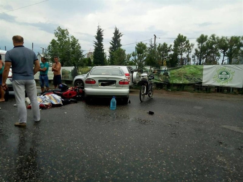 Автомобиль «ДЭУ» столкнулся с мотоциклом, в результате аварии водитель мотоцикла погиб. На месте происшествия работает следователь.