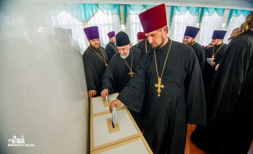 22 октября 2018 года в Свято-Успенском Одесском мужском монастыре Высокопреосвященнейший Агафангел, митрополит Одесский и Измаильский возглавил собрание духовенства Одесской епархии Украинской Православной Церкви, в котором приняло участие 413 клириков. После пения «Царю Небесный» по благословению митрополита Агафангела секретарь епархии протоиерей Евгений Гутьяр огласил повестку дня собрания.
