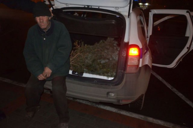 В Измаиле Одесской области полиция задержала нарушителя, который спиливал голубые ели возле горсовета.