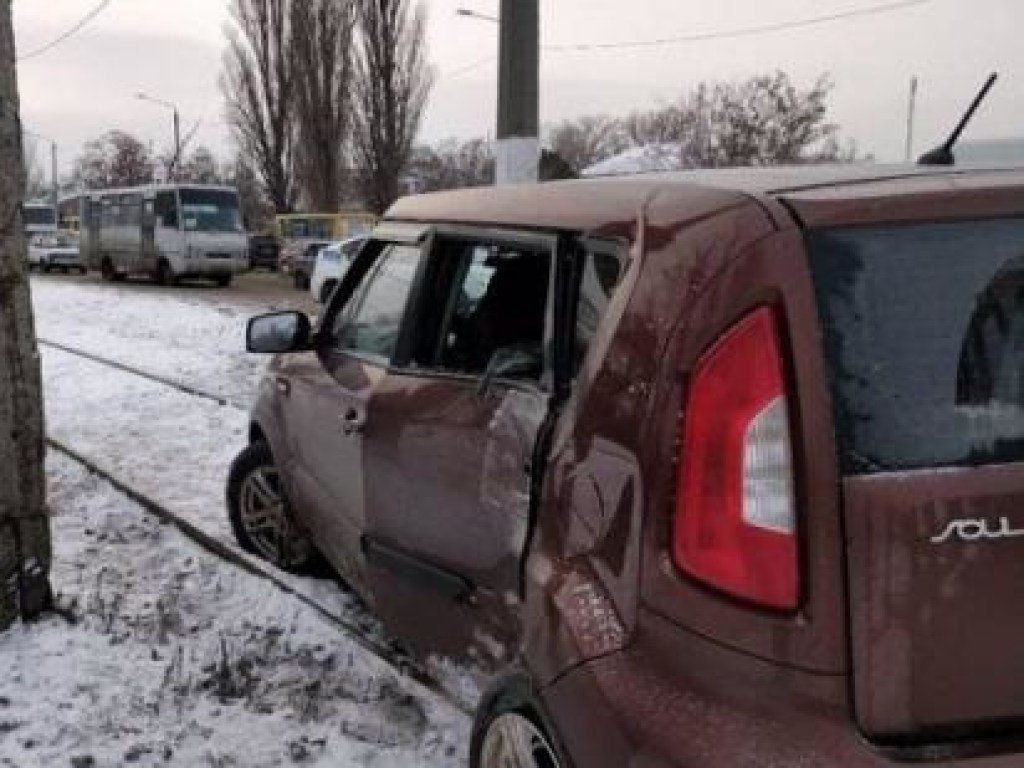 Во вторник, 8 января, в Суворовском районе Одессы иномарка, водитель которой не справился с управлением на скользкой дороге, вылетела на трамвайные рельсы и врезалась в опору лини электропередач.