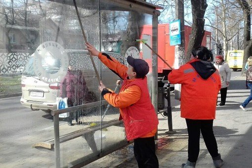 Кроме того, работники предприятия продолжают работы по помывке остановочных комплексов, мойке мостов и дорожного покрытия (под бортом).