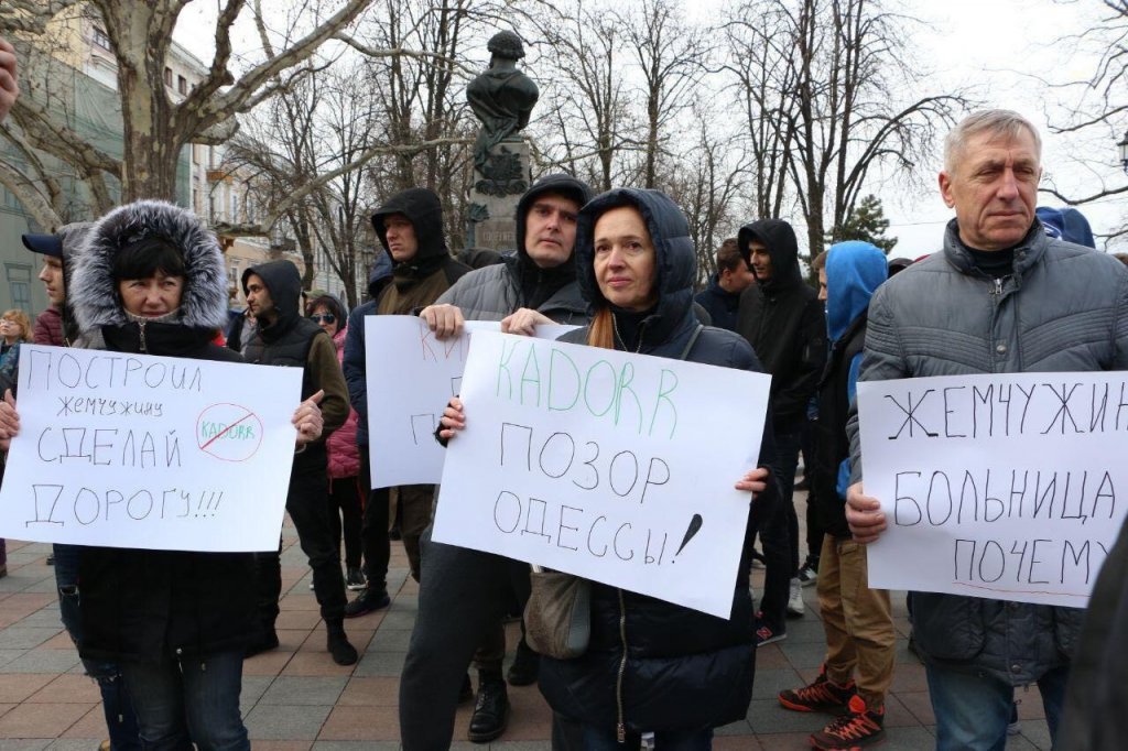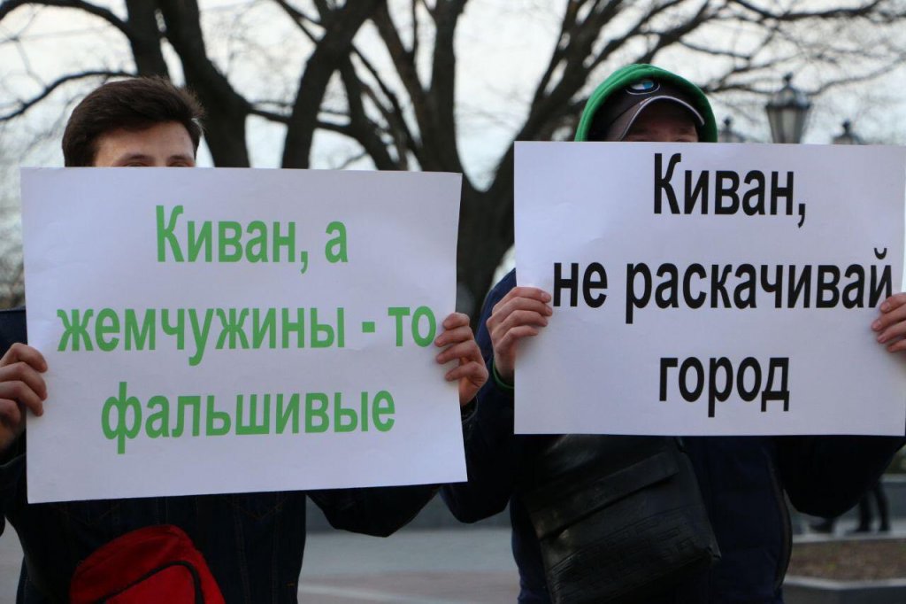 «Нет монстрам Кивана», «Одесса – туристический город, а не город Кадорра», «Киван, где парки?», «Жемчужин много, а больница одна. Почему?» - написано на плакатах участников митинга.