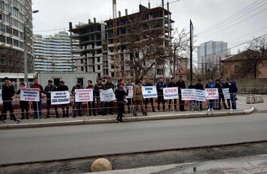 12 апреля на Фонтане, на улице Каманина состоялась мирная акция протеста против массового строительства высоток компанией "Кадорр" в приморской зоне Одессы.
