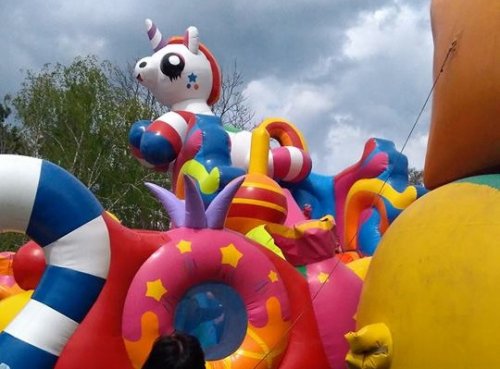 Неприятный инцидент произошел во время пасхального фестиваля в одесском парке Победы — детский надувной батут зажал женщину с ребенком.