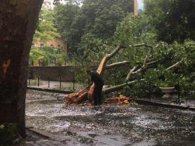 На улице Троицкой, 6 упала большая акация. Дерево рухнуло на мусорные контейнеры и придавило находящегося рядом мужчину. Прохожие оказали ему помощь на месте.