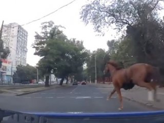 В Одессе патрульные полицейские остановили лошадь, внезапно выбежавшую на проезжую часть на Фонтанской дороге. Об этом сообщила пресс-служба местной полиции в Facebook.