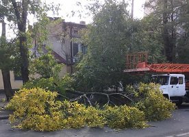 Падения деревьев и их фрагментов отмечены на проспекте Академика Глушко, 20/1, улицах Леси Украинки,47, Раскидайловской, 11, Нежинской , 48 и в переулке Красных Зорь ,14.