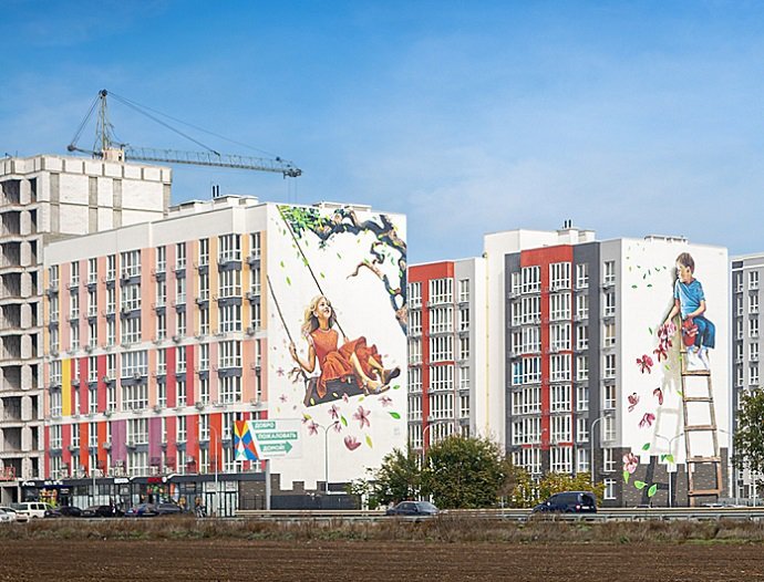 На фасаде домов одного из жилых комплексов в районе рынка «7 км» теперь красуется мурал-диптих. Арт-объект назвали «Близкие мечты», его автором стала художница Анастасия Белоус.