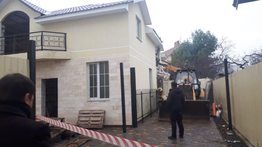 По улице Гвардейской, 4а, 4б, 4в продолжаются работы по демонтажу трех двухэтажных жилых зданий, построенных без разрешительных документов на земле, которая находится в коммунальной собственности. Напомним, что исполнительные службы согласно решению суда приступили к демонтажу 27 ноября, однако, работы были приостановлены из-за технических трудностей - доступ к строениям преграждала газовая труба.