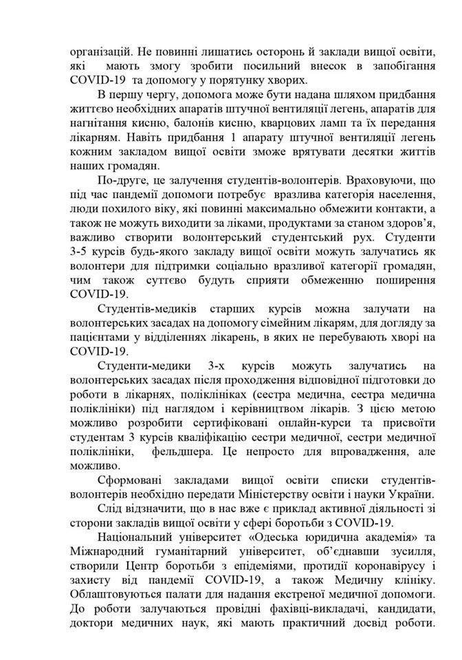 «Такие вызовы, как никогда, нуждаются в активизации и объединения усилий всех общественных и государственных институтов, учреждений и организаций. Не должны оставаться в стороне и высшие учебные заведения, которые могут внести посильный вклад в предотвращение COVID-19 и помощь в спасении больных.