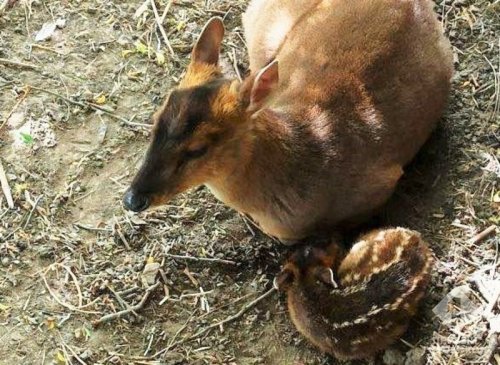 В Одесском зоопарке у пары китайских мунтжаков родился детёныш. Об этом сообщает официальный сайт города.