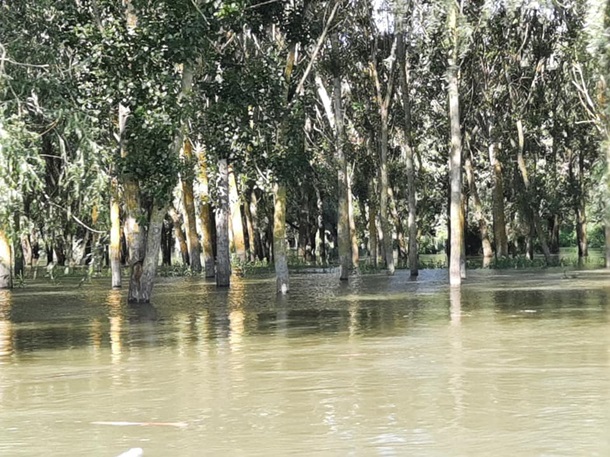 На низких участках автодороги Одесса-Рени вода поднимается к полотну дороги. Поймы вдоль нижнего Днестра заполнены водой.