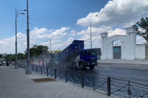 На сегодняшний день полностью завершены все работы по перекладке инженерных сетей, завершена укладка трамвайного полотна с устройством дренажной системы. Установлены новые опоры для наружного освещения и трамвайной контактной сети. Выполнены работы по мощению тротуаров с обустройством тактильной плитки на пешеходных переходах, установлены перильные ограждения.