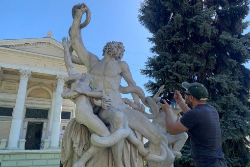 В Одессе восстанавливают знаменитую мраморную копию древнегреческой скульптуры «Лаокоон», установленную перед зданием археологического музея.