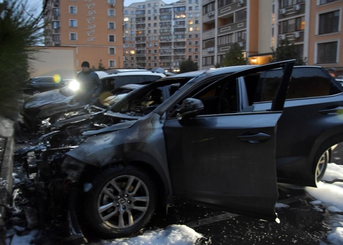 Копы установили, что первым от воспламеняющейся смеси загорелся Lexus, а затем огонь перекинулся на две соседние иномарки – SsangYong и Lexus.