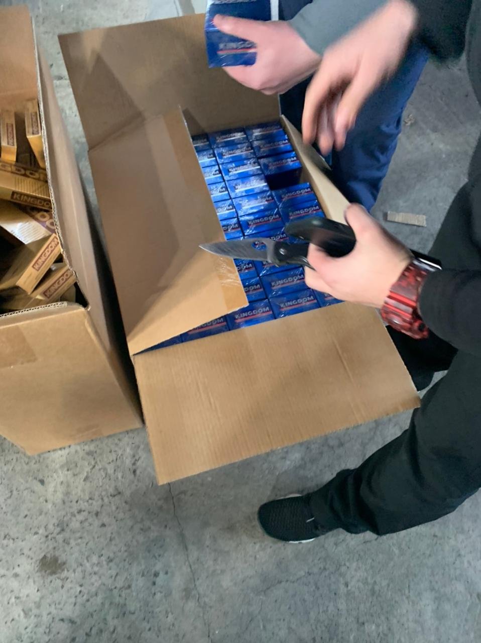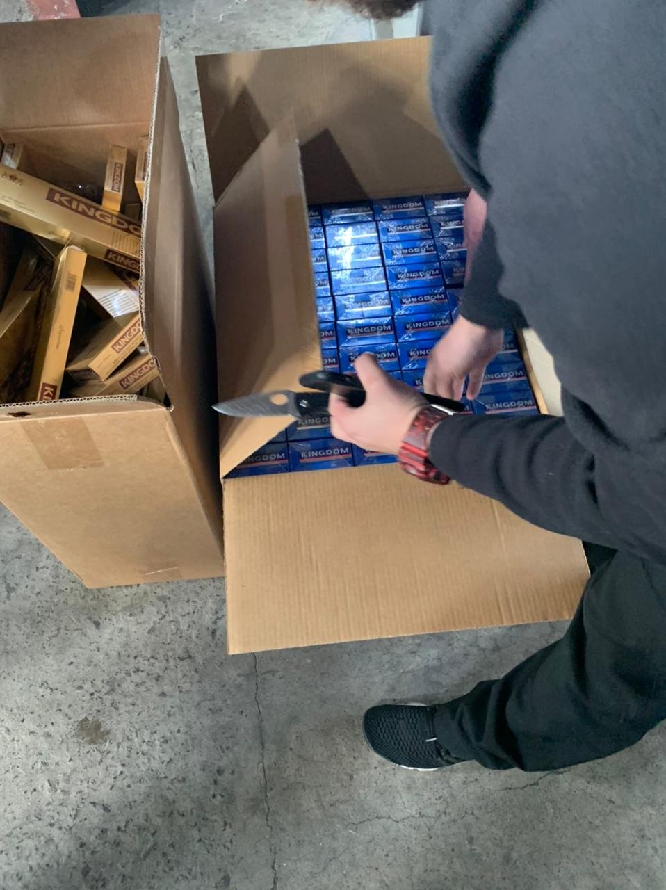 Однако во время таможенного досмотра выяснилось, что за первыми четырьмя рядами упаковок с салфетками находятся короба с сигаретами торговой марки KINGDOM без марок акцизного налога.