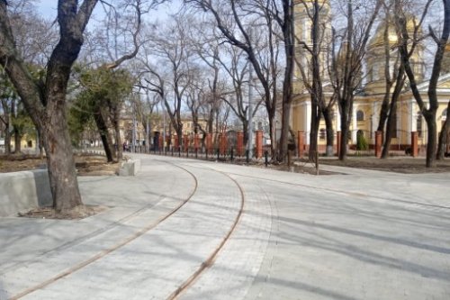 На сегодняшний день полностью обновлено наружное освещение сквера, установлены новые опоры контактной сети трамвая и смонтирована сама