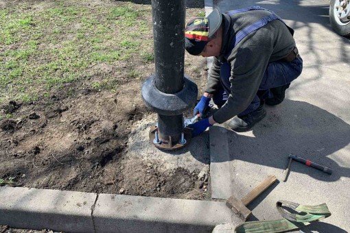 Специалисты КП «Одесгорсвет» регулярно выполняют работы по восстановлению опор наружного освещения, которые пришли в негодность.