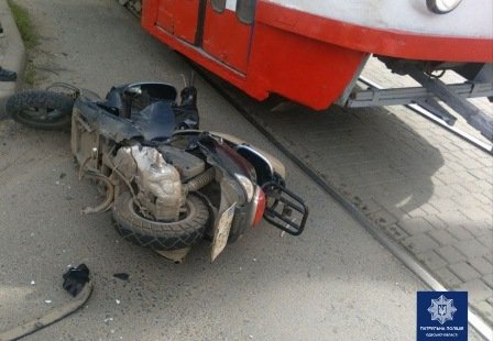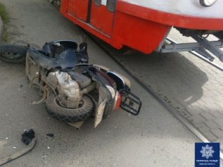 В Одессе на Люстдорфской дороге столкнулись автомобиль такси и курьер доставки еды на мопеде.