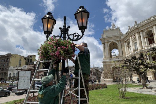 Сегодня, 12 мая 2021 года, подвесными цветочными вазами украсят Приморский бульвар, Думскую и Театральную площади. Всего планируется установить 200 чаш вертикального озеленения в разных районах Одессы. Специально для этого в теплицах предприятия были заготовлены около 1000 шт. рассады петунии.