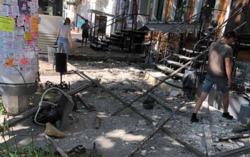Отмечено, что часть фасада, которая обвалилась из старого дома оборвала электропровода и повредила вывески, что находились в заведениях здания.