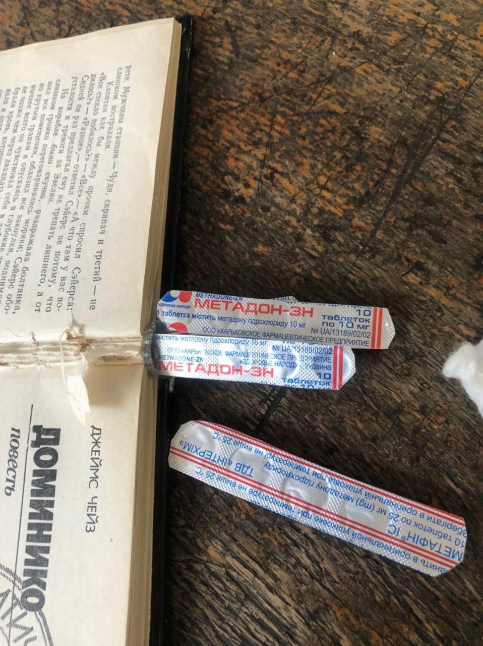 Одессит отправил почтой в США старый сборник политических детективов "АРЕНА", в который спрятал 30 таблеток метадона. Полоски блистерной упаковки наркотиков он положил между корешком и основным блоком книги, зафиксировав с обеих сторон ватой.
