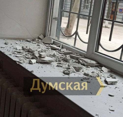 В Одесском национальном университете имени Мечникова в стене появились трещины, а затем и обвалилась часть штукатурки. Отмечается, что это произошло посреди лекции.