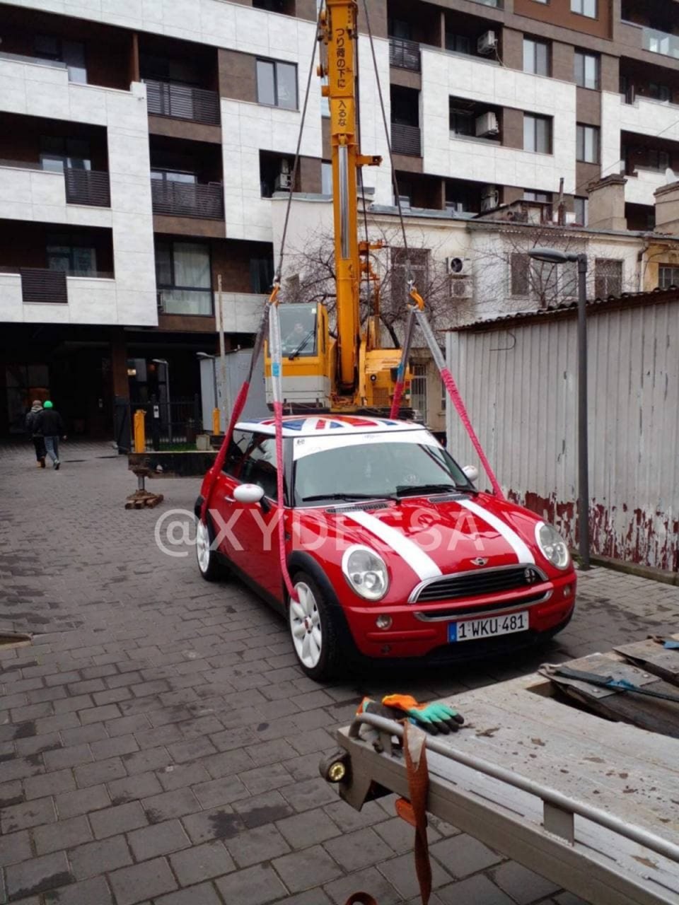 Сообщается, что на улице Кузнечной автомобиль MINI Cooper установили на седьмом этаже многоэтажки.