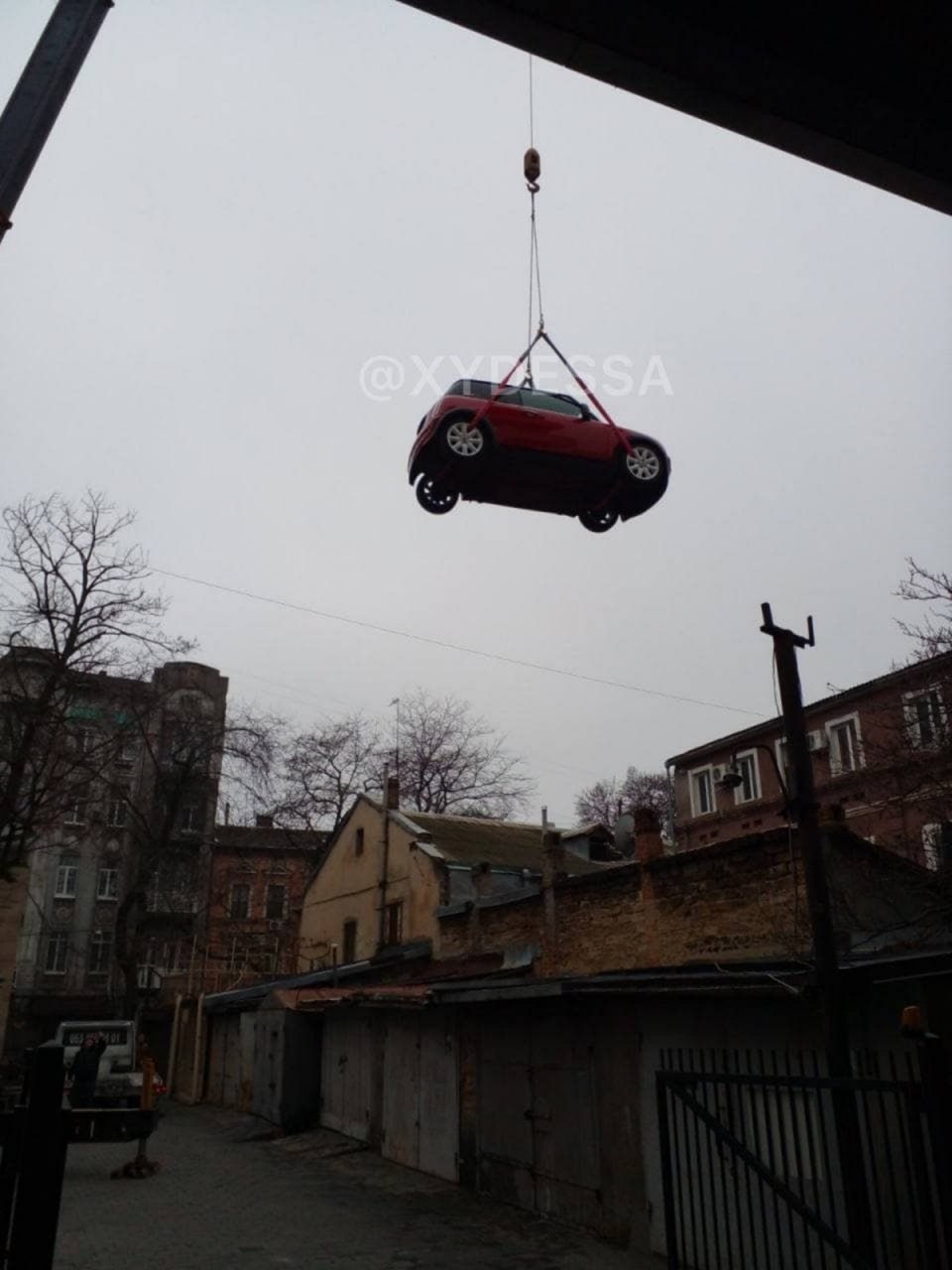 В Одессе в четверг, 16 декабря, автомобиль подняли краном и установили на лоджии седьмого этажа жилого дома. Об этом сообщают одесские Телеграм-каналы.